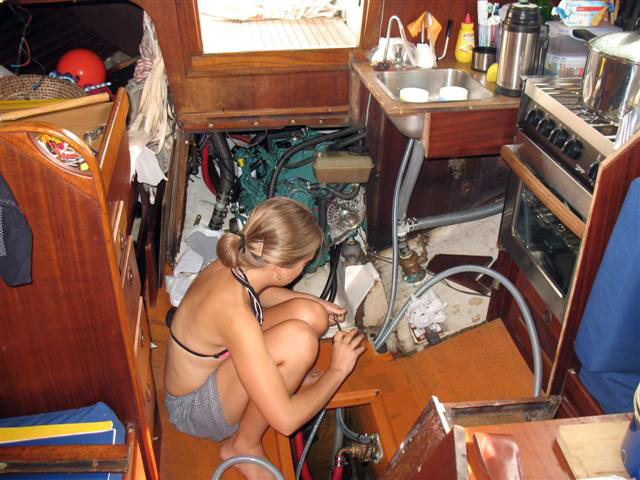 Pak už jsme si jen s Janičkou sepsali, co je třeba udělat, a konečně nám spadl velký kámen ze srdce. Prohlídka nám dosvědčila, že motor je v dobrém stavu, co v dobrém, Fang tvrdil, že ve skvělém. Jenom vyměnit olejové a palivové filtry, nainstalovat filtr na mořskou vodu (abychom nenasáli do motoru nějakou mořskou potvoru) a mělo být všechno Fangovými slovy „ok, ok, no problem“.