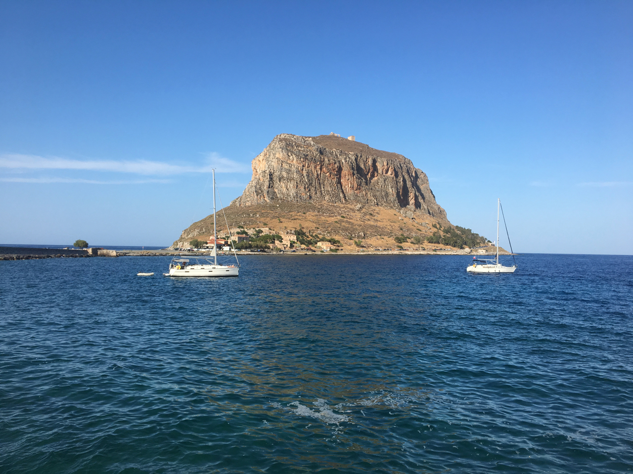 Obrovskou skálu tvořící ostrov přilepený k peloponéské pevnině nelze z moře přehlédnout. Je dominantou řecké Lakónie – ano, té slavné Lakónie, jejíž hlavním městem je takřka od nepaměti dórská Sparta a odkud pocházeli proslulí starověcí válečníci. Monemvasijská skála, přezdívaná též řecký Gibraltar nebo tako Rock, je monumentální a je to místo, které jsme prostě nemohli minout.