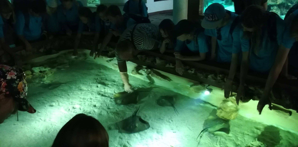 My jsme strávili půlden v mořském akváriu. Naší snahou bylo dětem nejen ukázat, co žije ve Středozemním moři, ale hlavně jim ukázat, co je nebezpečné a jak se chovat v případě, že se s tímto živočichem setkáme. Nešlo ale o strašení dětí žraloky. Naopak! Žraloky a rejnoky si tu děti hladily.
