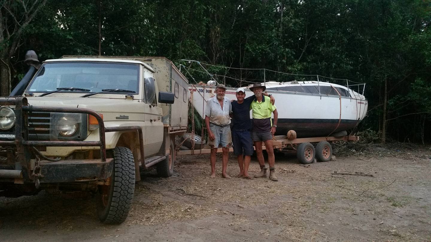 A jak řekli, ta udělali. Ty výpravy byly nakonec dvě. Na obě se k nim ještě přidal Johnův stejně starý kamarád Jeff (80), také se stařičkou Toyotou. Obě auta i s vlekem se šťastně probojovala zpátky k Alyi, kde naložili kýl, stěžeň a zbytek věcí. Martin napsal přímo z buše přes satelitní telefon: