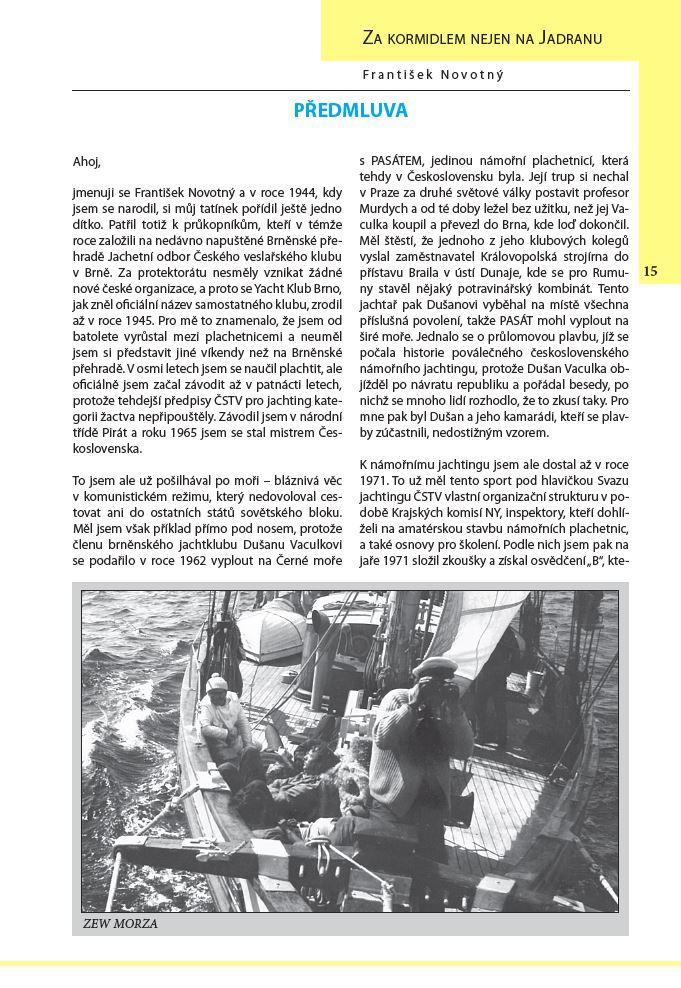 První vydání vyšlo v roce 2010 a tak jsme letos s Františkem usoudili, že by si kniha zasloužila doplnit, aktualizovat, upravit a zkusit se vydat na cestu k dalším čtenářům. Věříme, že za tu dobu dorostla další generace jachařů, kterým se Františkovi zkušenosti budou hodit. A že opravdu stojí za to zjistit, proč básník John Masefield napsal: „Lidé na lodích se vždy dívají vzhůru, kdežto lidé na souši převážně klopí oči dolů.“