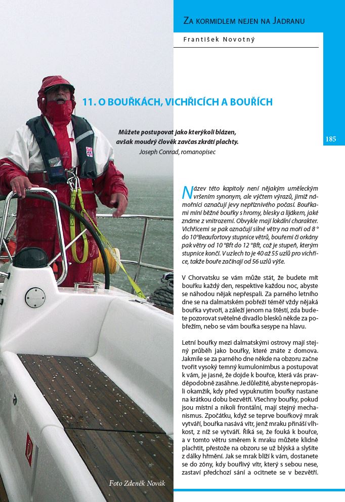 Kniha Františka Novotného, Za kormidlem nejen na Jadranu, praktický průvodce jachtingem, vzbudila v době svého prvního vydání dosti vzruchu. Nejen svou obsáhlostí a fundovaností výkladu, ale i upřímným přístupem autora, který sepsal nejen příručku, ale i příběhy ze svých mnoha plaveb, kterými výklad doplnil. Jako zkušený jachtař s mnoha zkušenostmi ze všech možných moří se František v knize nebál přiznat i vlastní chyby, aby se z nich mohli ostatní jachtaři poučit.