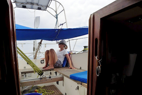 Celý den střídavě pršelo, a jakmile déšť na chvíli ustal, natahovali jsme plachty, vyměnili olej v převodovce, nainstalovali do lanoví zpět radarový odražeč (radar reflector), zajeli na pumpu s kanistry a doplnili naftu do nádrže, došli na trh pro poslední čerstvou zeleninu a ovoce, nechali si uříznout led do přenosné ledničky, vyrobili si igelitový závěs, kterým jsme plánovali během plavby zakrýt vchod do kajuty před deštěm… Kolem třetí hodiny přišli i úředníci z imigračního a orazítkovali nám pasy, že smíme vyplout. V šest hodin se náhle zatáhla obloha a spustil se další slejvák. Rychle jsme se schovali v nitru kajuty, a zatímco jsme popíjeli džus z čerstvého ovoce, povídám: