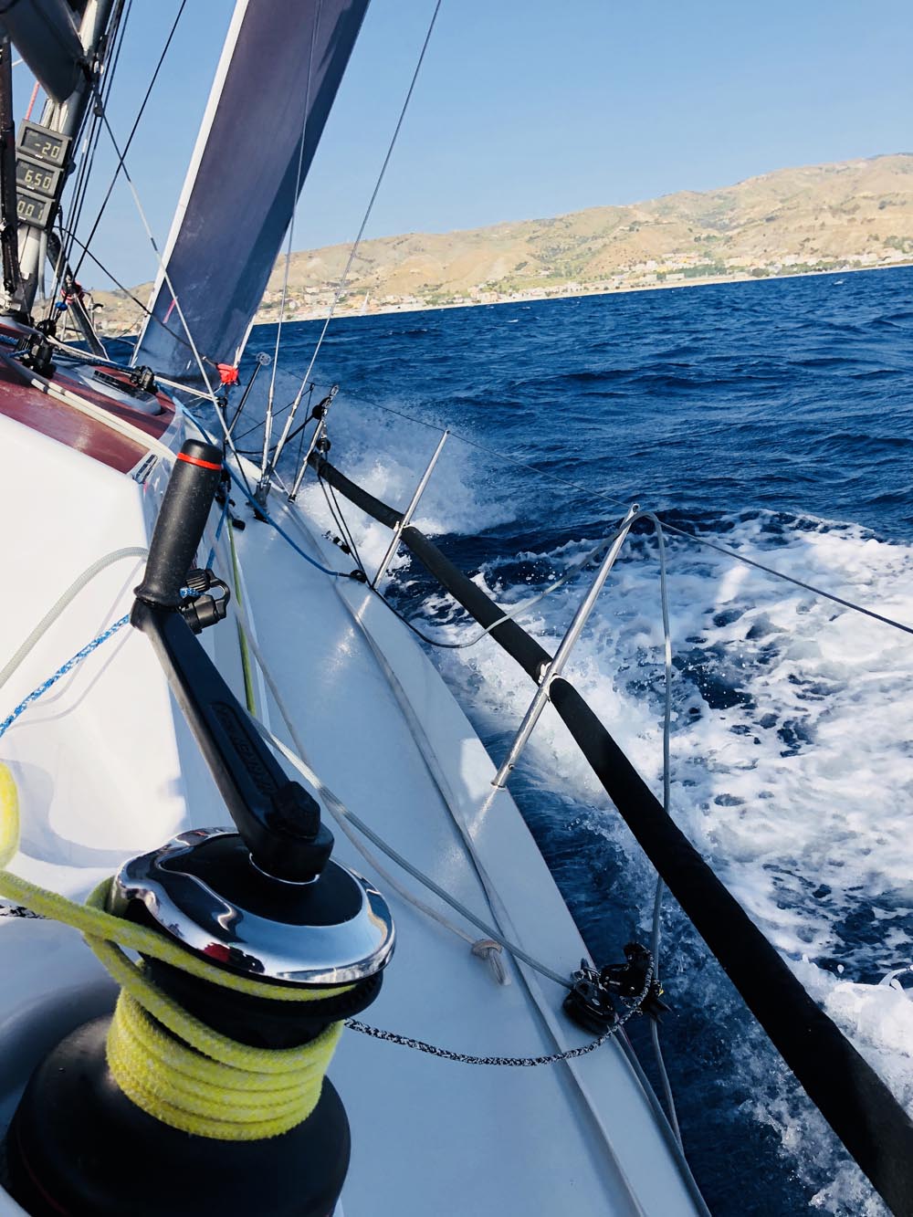 Hebe V si do zhruba 20 mil před Stromboli užívala krásný jachting, ale od sopky Stromboli k Trapani bojovala asi 140 mil proti větru o síle 25-35 uzlů a 4-metrovým rozbitým vlnám. Pro loď i posádku to byla velká zkouška. Následně se při serfování po vlnách, které zajišťovaly rychlost lodě okolo 20 uzlů, roztrhl spinakr číslo 3. Spinakr číslo 2, který posádka poté vytáhla, se roztrhl hned po 25 minutách při poryvu větru 30 uzlů.