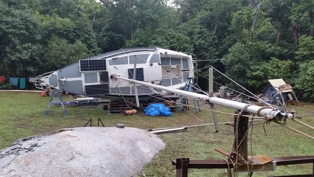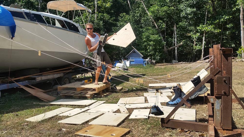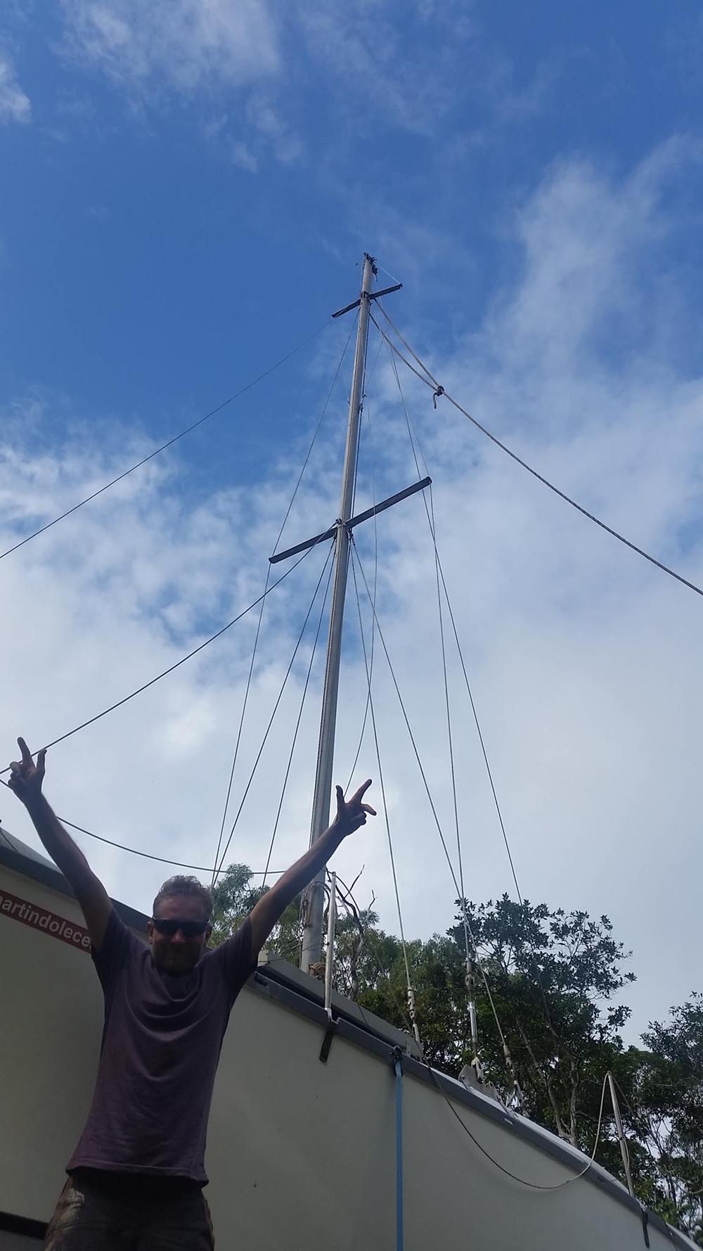 21.října byla už Alya natolik v dobrém stavu, že Martin mohl postavit stěžeň a takeláž. Všichni jsme ale napjatě očekávali, kdy a jestli se podaří úspěšně namontovat na trup kýl. Plachetnice bez kýlu totiž stále není plachetnice…