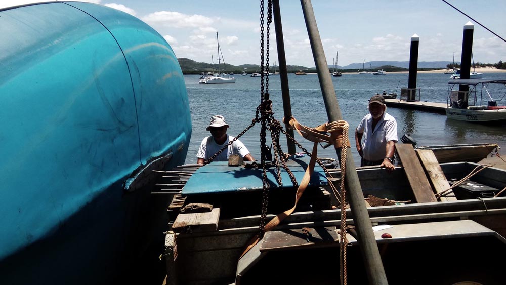 A konečně ve středu 1.11. se Martinovi s jeho přátelům v Austrálii povedlo převézt Alyi k vodě a tam ji přimontovat kýl! Alya je již konečně kompletní a vrací se na vodu!
