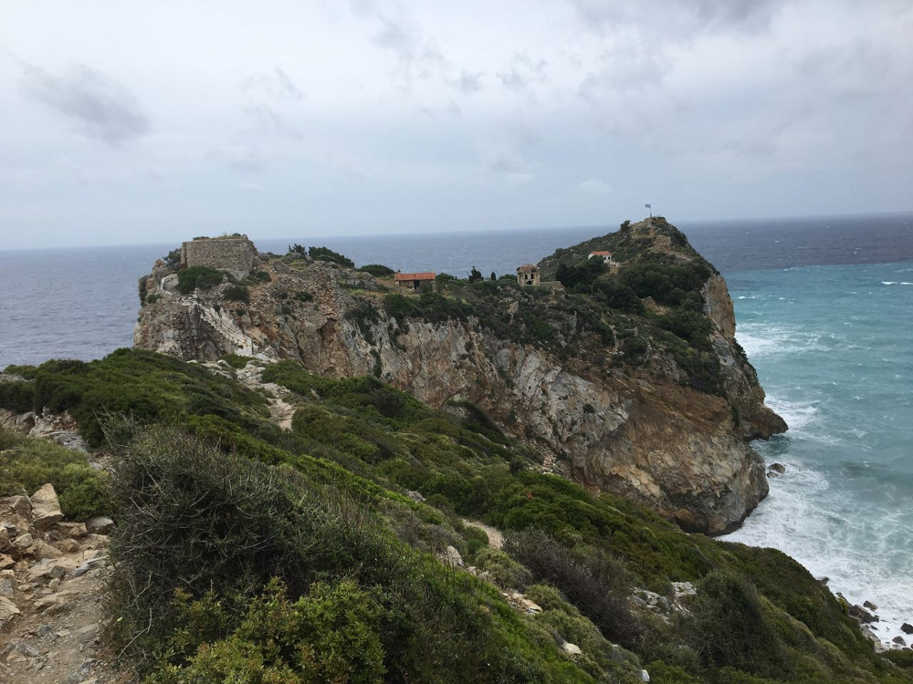Pavel je úplný začátečník, nikdy na lodi nebyl, takže jsme se rozhodli pojmout plavbu opravdu konzervativně, zejména když předpověď slibovala na druhou půlku týdne pěkný fičák. Prvního dne plavby, tedy v pondělí, jsme vyrazili na kostelák Mamma Mia, který je tady prostě povinností. Hladina byla klidná a tak jsme po obeplutí severního mysu Skopelosu hodili kotvu v zátoce pod kostelíkem. A opět to bylo velmi krásné. Vyšplhali jsme nahoru, nafotili, co se nafotit dalo a zpátky na lodi jsme se vykoupali. Voda sice byla trochu studená, ale dalo se to snést.