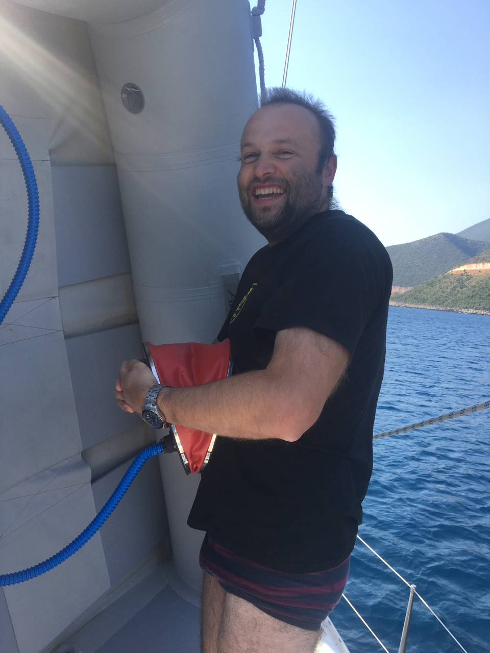 Druhý den ráno v 8:15 jsme vypluli. Hned za Porosem se zvedl vítr, vlny a tak jsme vytáhli plachty a zamířili k ostrovu Hydra. Stále po plachtami jsme propluli hyderským kanálem, po pravici nechali ostrov Speces a vyrazili vstříct Peloponésu. Foukal čerstvý vítr, 20-25 uzlů a my uháněli na zadobok rychlosti kolem sedmi, sedmi a půl uzle. Gaia plula s nadšením a my také – už ta zimní přestávka byla přeci jen dost dlouhá.