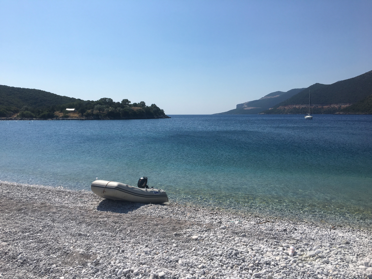 Pohříchu silný vítr zvedl i vlny a zabránil tak výsadku u vraku turecké lodi. Škoda, co se dá dělat. Tak snad někdy příště. Do poslední chvíle pod větrem a na plachty jsme dosáhli skalnatého výběžku Paleocastro, po jehož jižní stranou jsme našli klidné kotviště.