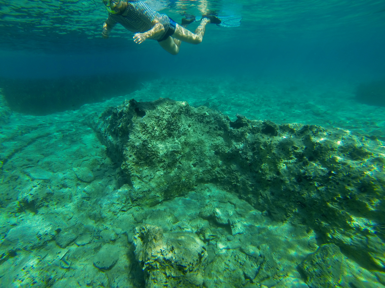 Na pořadu dne (30.května) je návštěva potopeného města Petropavli, které leží jen nedaleko od Paleocastra. Jedná se o nejstarší podmořské archeologické naleziště, a tak jsme se na něj značně těšili. Hned ráno jsme vypluli a už za hodinu a půl házeli kotvu u Petropavli. Bohužel, očekávání se lišilo od reality. Několik starých zdí, deska se základy sloupů snad… a to bylo vše. Byli jsme docela zklamaní, „naše“ potopené město u Ephidauru je daleko malebnější a zachovalejší. Ale co se dá dělat, není každý den posvícení. O to více jsme byli nadšení hned za pár hodin.