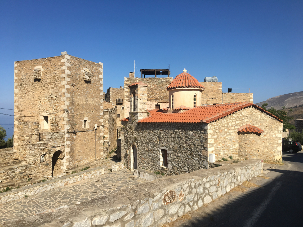 My už jsme v zátoce Kayo našli jen potomky Maniů, kteří byli (zdálo se) mírumilovní a provozovali dvě restaurace, kde jsme dostali vynikající večeři. Místní s námi dokonce vyjelli autem na malý výlet do opevněné vesnice Váthia a také k mysu Tenaru ke vchodu do podsvětí. Jednu z restaurací dokonce spoluvede paní ze Slovenska, takže jsme si popovídali a slíbili, že o ní povíme doma! Takže kdybyste chtěl někdo v téhle malebné a historicky bohaté krajině strávit třeba dovolenou, tak kontakt je: Paní Aďa ze zátoky Porto Kayo, akrotiri@porto-kagio.gr, +306973931046. Mají i malý penzionek, takže pokude chcete někdo strávit svkělou a nevšední dovolenou… neváhejte.
