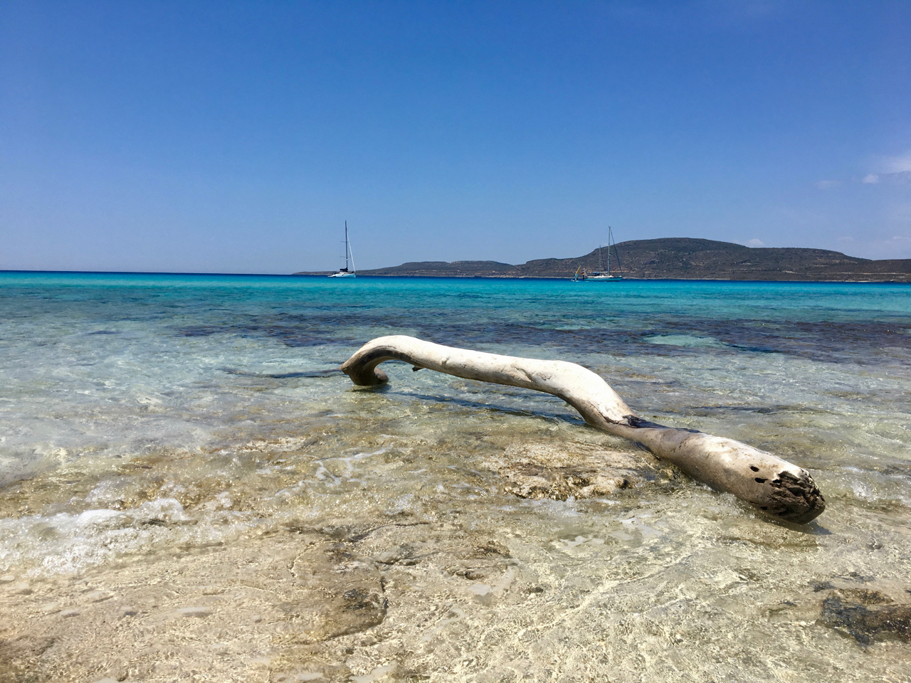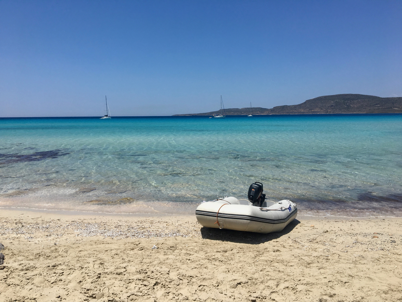 Čerstvý vítr nás dofoukl k ostrovu Elafoniso, na jehož jižní straně, u mysu Elena, leží dvě malební zátoky. Hodili jsem kotvu v té západnější, skočili do člunku a uživali si osamělé písečné pláže, která snese za nejpřísnější měřítka kvality.