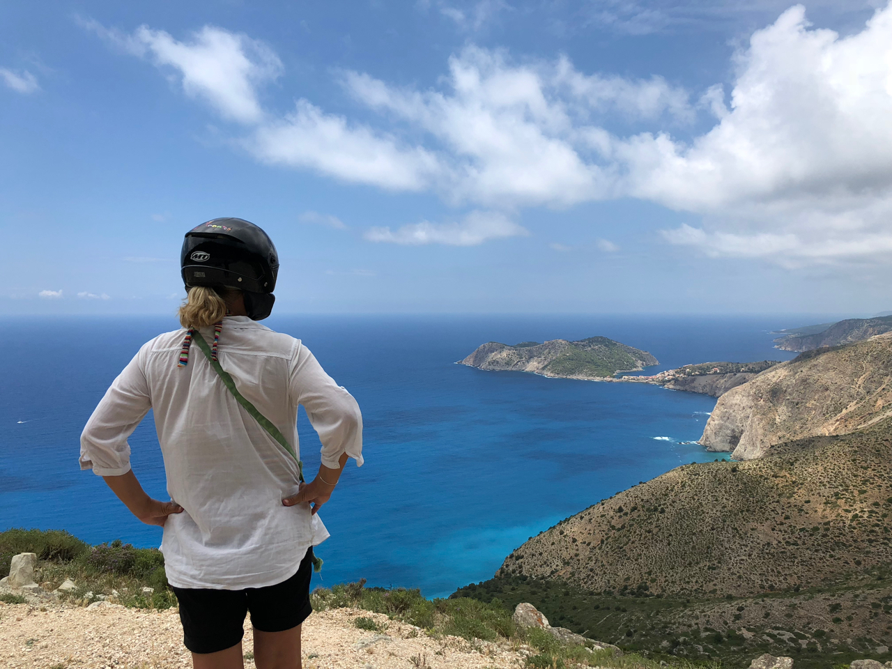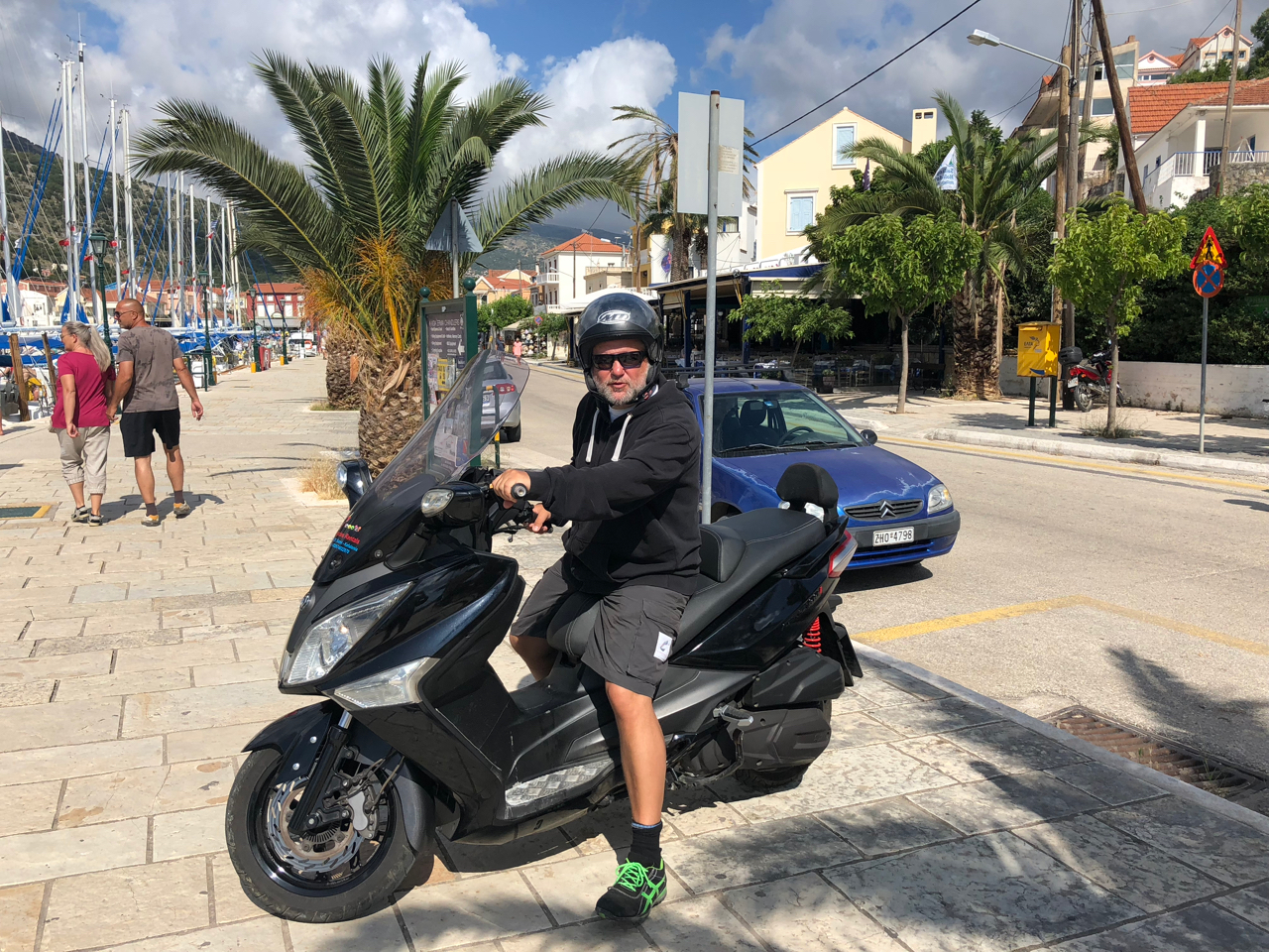 V neděli 10. června jsme si ráno půjčili skůtr, raději silnější, 300 ccm a vyrazili na výlet. Cílem bylo navštívit Fiskardo, pláž Mytros a hlavní město Argostoly. Pokud se někdy na Kefalonii dostanete a budete mít den času, tak ten skůtr určitě nevynechejte. Provoz zanedbatelný, silnice velmi pěkné, většinou široké. Výhledy, které se vám otevřou při přejezdu kefalonských kopců stojí za to. Ta stoupání jsou někdy hodně ostrá, takže proto ten silnější skůtr. Navíc na motorce si člověk tu jízdu užije víc, než zavřený v autě. Raně letní Kefalonie byla až omamná – vůně pínií, vůně tymiánu – neskutečně silné. Poznáte ostrovní Řecko zase trochu jinak.