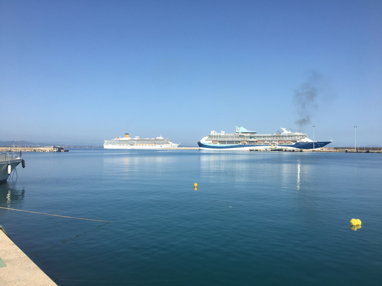 Mys Katakoloni a městečko Kalithea jsou z dálky viditelné a snadno identifikovatelné. Nicméně to, co jsme zpočátku považovali za obytné budovy na břehu, byly dva pěkně velké cruishipy. Mají tady pěkné přístaviště i s remorkérem a vysazují zde pasažéry na celodenní výlet do Olympie. Naše představa klidného ospalého městečka vzala trochu za své, zejména poté, co jsme si v průvodci přečetli něco o nočních barech. Další překvápko nás čekalo u přístavu. Na mapách Navionics před mysem Kavos, na kterém Katakoloni leží, má být zelená zvuková bóje. Nehledejte ji. U přístavu je uvedena pracovní zóna ohraničená na SV straně dvěma bójemi, červenou a žlutou. Nehledejte je. A u vstupu do přístavu na východní straně je na mapě uveden ostrůvek délky asi 300 metrů a šířky tak 30 metrů. Ani ten neexistuje. Co z toho plyne? Dávejte si v Řecku bacha!