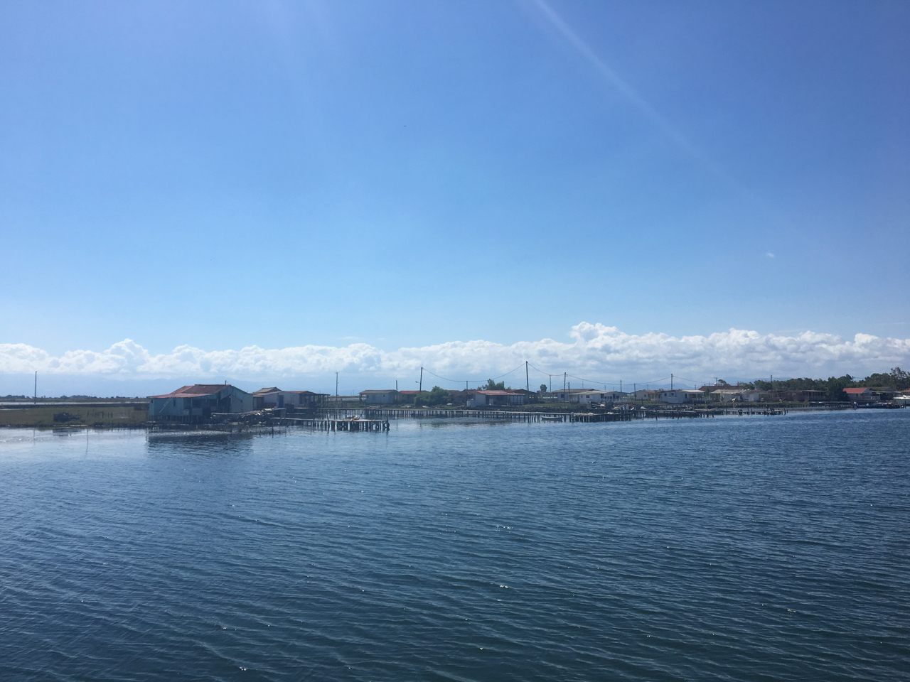 Mesolongi leží na severozápadním okraji patrasského zálivu. Dnes je to docela odlehlé místo a od pohledu geograficky velmi neřecké. Pobřeží tvoří velká mělká laguna a do samotného města vplouváte vybójkovaným bagrovaným kanálem lemovaným dřevěnými moly a domečky často na kůlech. Vůbec to nevypadá jako hornaté Řecko, máte spíš pocit, že jste v deltě Dunaje nebo na kubánském jižním pobřeží. Připlouvali jsme za docela silného větru a tak jsme rádi vzali za vděk okrouhlým přístavem s marínou ležícím na konci kanálu. Ale ouha. Na naše volání vysílačkou do maríny nám sdělili, že jsou z moci úřední zavření a že se máme někam venku postavit. Nu, co se dalo dělat. Našli jsme si místečko před obrovskou nákladní lodí, která zrovna vykládala listy větrných elektráren, a šlo se do města.