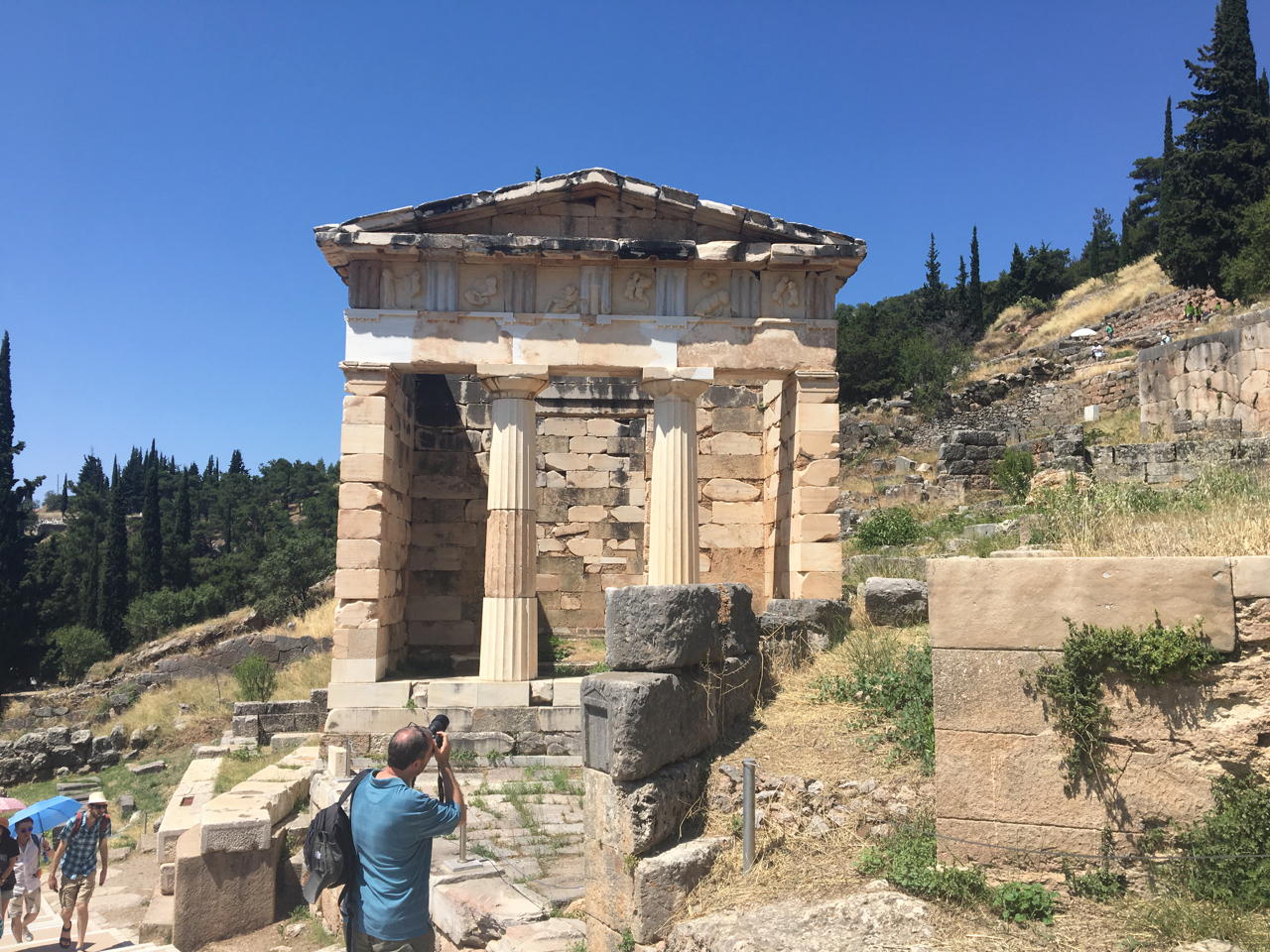 Pondělí, (2.7.) bylo vyhrazeno Delfám. Pokud sem někdy zavítáte, Delfy nevynechejte. Je to magické starobylé místo a za návštěvu rozhodně stojí. Já osobně jej řadím na druhé místo památek, co jsem v Řecku viděl – první je Akropole v Athénách. Z Itey jezdí do Delf a zpátky autobus za pár euro. Možné je jet i taxíkem za dvacku, to když vám ten autobus ujede. Nezkoušejte jet na skůtru. V celé Itee totiž není půjčovna skůtrů, jenom aut. Škoda. My jsme se na ten skůtr moc těšili, ale nakonec jsme museli autobusem. V Delfách navštivte nejen venkovní expozici, ale nezapomeňte na muzeum. Je v něm chládek a fantastické exponáty.