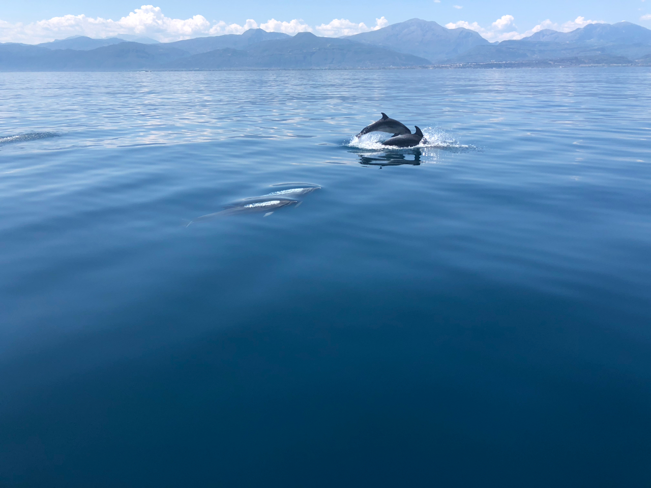 Dalším cílem byla Ithea, nástupiště pro výlet do Delf. Vítr se ale asi vyfoukal minulý týden, protože jsme to celé odmotorovali. Náplastí na nafting bylo ale setkání s velkým stádem delfínů, které dovádělo okolo lodi aspoň půl hodiny. Natočili jsme z toho krásné video.