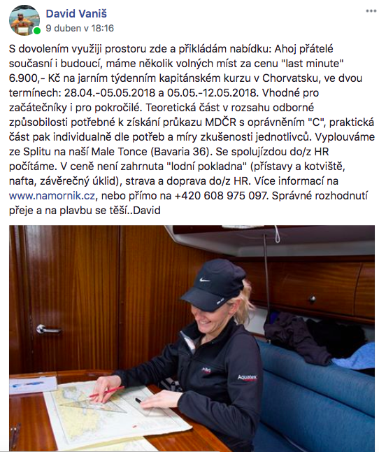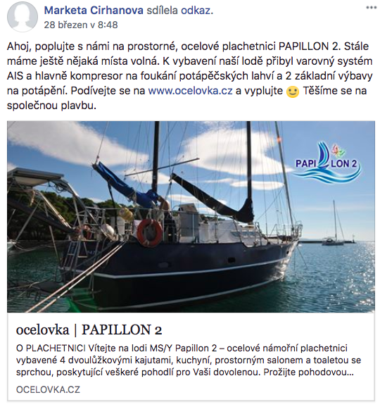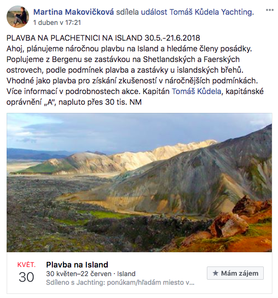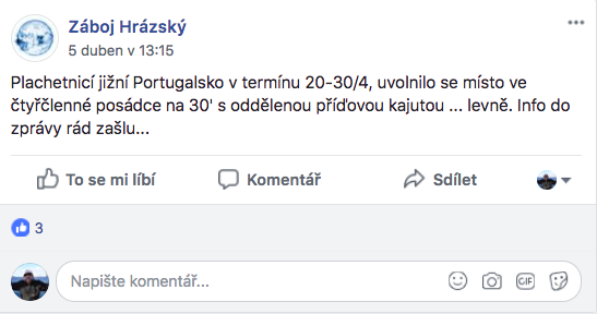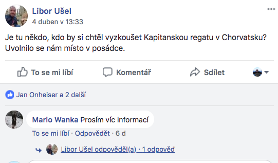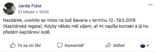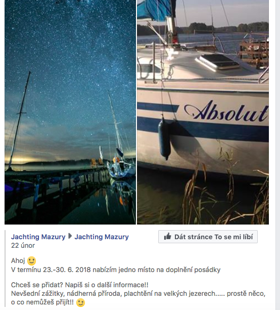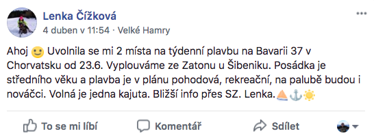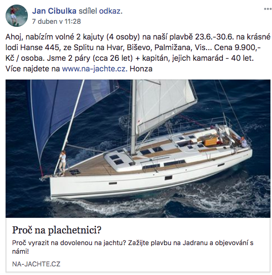 Krása jachtingu: Hledám posádku nebo loď. Jediné, co se zatím ukazuje jako zvládnutelné, je vkládání kopií jednotlivých inzerátů. Tak uvidíme, jak se to osvědčí. V těch inzerátech jsou většinou uvedeny kontaktní informace přímo, pokud tam nejsou a moc vám na nich bude záležet, zkuste napsat nám do redakce, my oslovíme dotyčného přímo. (A nebo si udělejte profil na Facebooku 🙂 ).