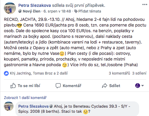 Krása jachtingu: Hledám posádku nebo loď. Jediné, co se zatím ukazuje jako zvládnutelné, je vkládání kopií jednotlivých inzerátů. Tak uvidíme, jak se to osvědčí. V těch inzerátech jsou většinou uvedeny kontaktní informace přímo, pokud tam nejsou a moc vám na nich bude záležet, zkuste napsat nám do redakce, my oslovíme dotyčného přímo. (A nebo si udělejte profil na Facebooku 🙂 ).