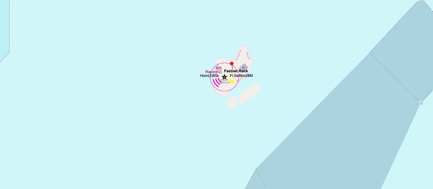 → Maják s 2 záblesky bílého světla každých 10 sekund, 15 m nad hladinou, dosvit 12 NM.