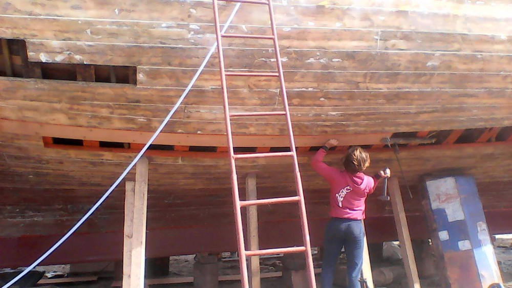 A už zase opravujeme trup – dřevěná loď je věčná skládačka a nikdy nekončící práce! Po mých zkušenostech jsem přesvědčen, že na slavné Victorii nebylo ani jedno současné prkno u Trafalgaru 😀