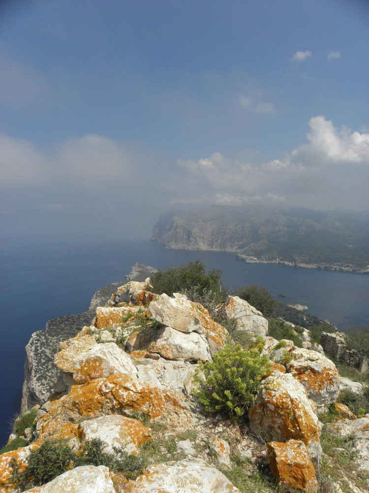 Před polednem házíme kotvu u ostrova Dragoneira. To je divoký a nepřístupný ostrov na západě Malorky. Jeho kopce připomínají dračí zuby. Z jedné strany pozvolné do výšky přes 350m se ze strany druhé kolmo řítí do mořské tříště.