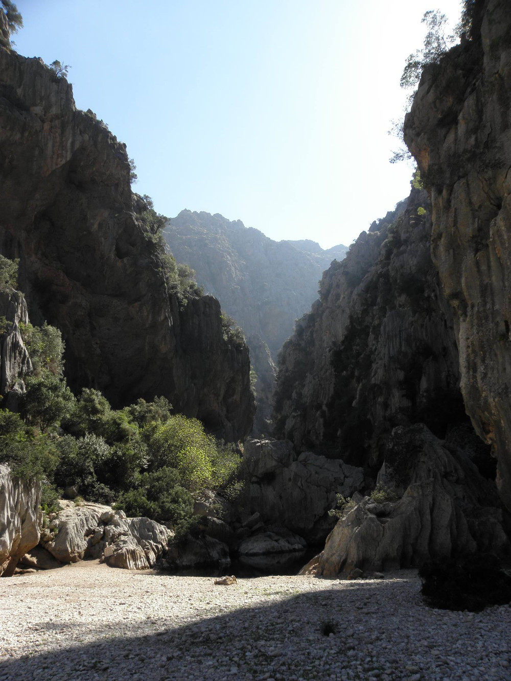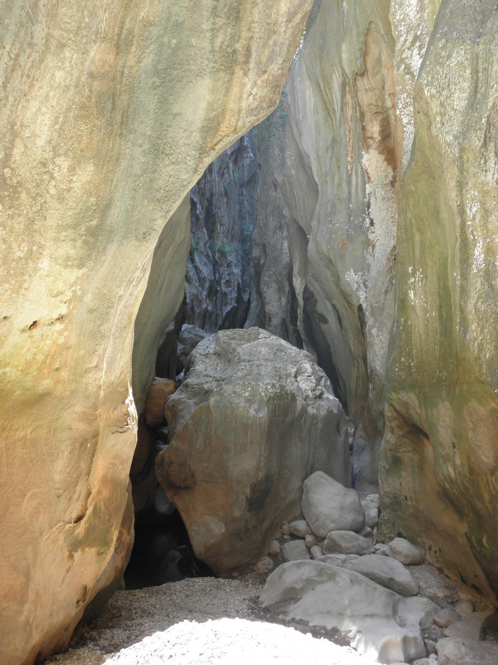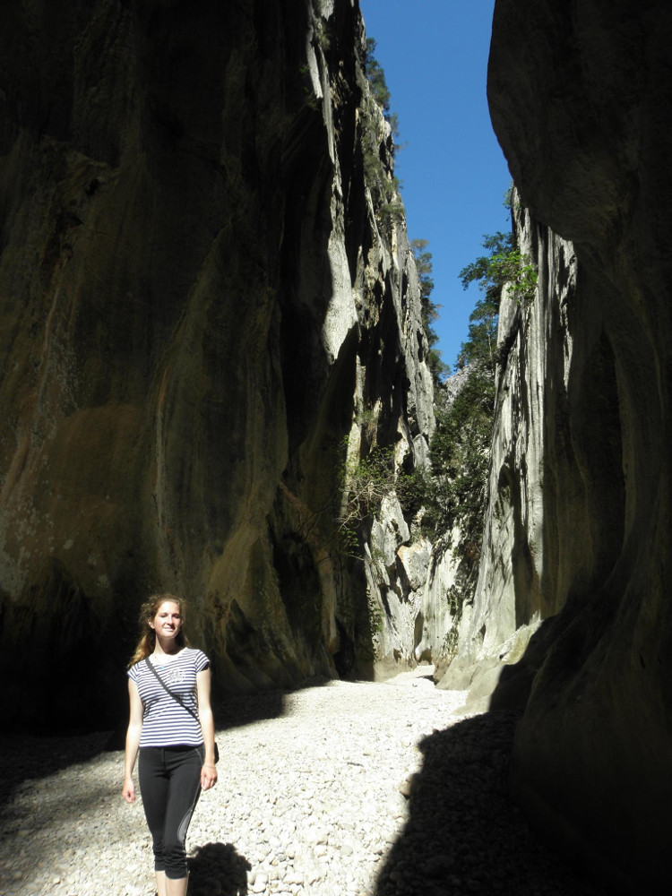 Po snídani vyplouváme. Nefouká a tak plujeme na motor podél skalních stěn. Cílem je zátoka La Calombra. Z ní vede nádherná a hodně dobrodružná stezka hlubokým a úzkým údolím řeky. Stezka samotná je podle průvodce 6hodin dlouhá s převýšením přes 600metrů. Na mapě to ale nevypadá nijak daleko. Vyrazili jsme a pochopili. Cesta by se asi nejlépe přirovnala k něčemu mezi vysokohorskou turistikou, caňoningem, speleologií a horolezectvím! Lidi nám postupně odpadávali a vraceli se na loď z nepřekonatelných úseků. No, byla to pecka a nezapomenutelný zážitek. Snad vám to nejlépe připodobní pár amatérských fotek, co jsme s Romčou udělali cestou.