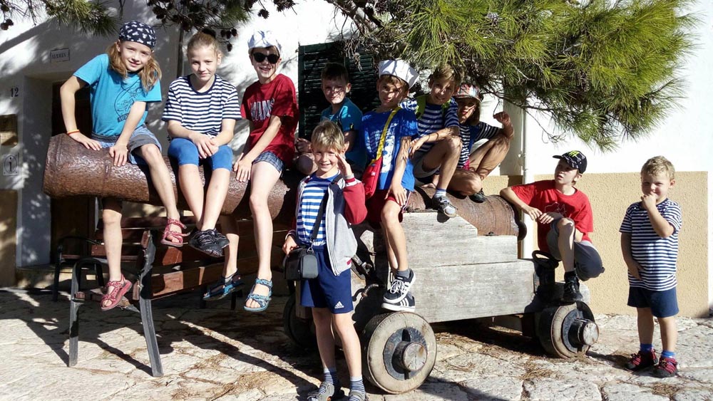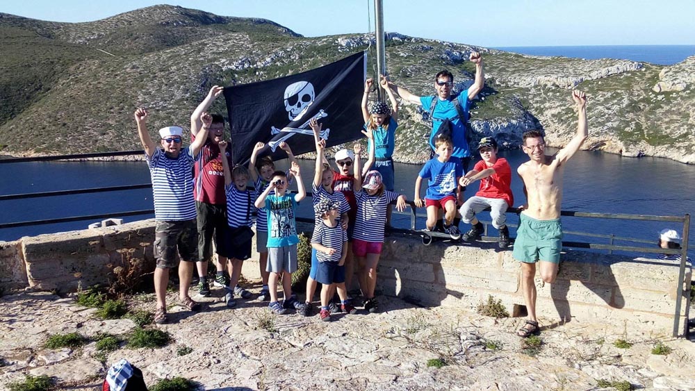 Po snídani vyrážíme do Port Adriano. Stálá posádka doplňuje benzín a vodu a kadeti vyrazili v kostýmech drancovat pobřeží. Vrátili se s 5,- EUR v kapse, ale dobrý.