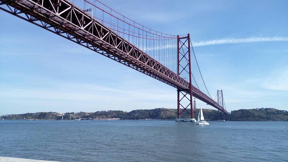Hned po snídani opouští loď Peniche a do večera se musí dostat před Lisabon. Dnes pěkně fouká zezadu, a tak je rychlost kolem 4,5 kn. Se západem slunce kapitán Wojtek hází kotvu před vjezdem do maríny Cascais. Kotva drží, ale místa kolem není mnoho. My s Romčou a Merlinem jsme si také stihli prohlédnout centrum Lisabonu. Za zmínku stojí pocházka centrem od ohromného sloupu k bráně u moře, procházka pod červeným mostem připomínajícím „Golden Gate“, návštěva památníku mořeplavcům, na němž v čele soch stojí Jindřich Plavec, nebo známá vodní pevnost Belem.