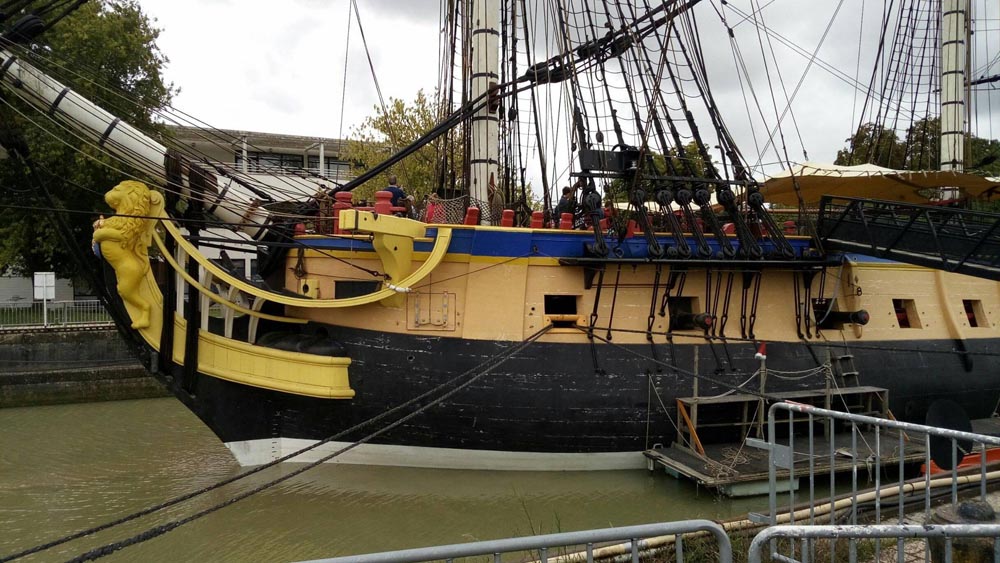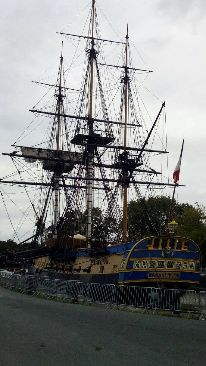 Odpoledne jsme podnikli výlet do Rochesfortu abychom navštívili největší a nejkrásnější Francouzkou loď – Le Hermionu. Privátní prohlídku s námi udělal přímo její slavný kapitán. Milý chlapík co nám 2hodiny velmi lidsky vyprávěl o tom, jak to vlastně mají stejně těžké jako my. Provedl nás naprosto celou lodí a ukázal každý konstrukční problém, se kterým se na jejich velké cestě do Ameriky potkali. Na závěr jsme si předali kontakty a dohodli si krom oficiálních setkání na festivalech v roce 2018 i soukromá setkání cestou a bitvy mezi námi jen tak pro radost
