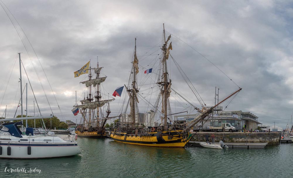 Loď s proudem letí i 6kn, takže jsme před městem brzy. Ve 4hod. ráno házíme kotvu co nejblíž městu, ale ještě na hluboké vodě. Mezi námi a přístavem je teď jen 0,6m vody. Musíme čekat na příliv. 5 metrů ale úplně změní možnosti a v 7hod. ráno vplouváme do La Rochelle. Máme tu setkání s lodí Shtandart.