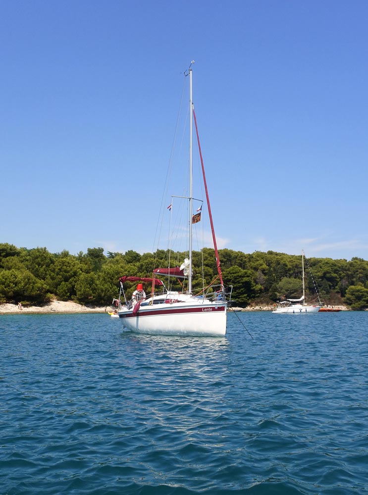 Když už se to ale stalo, jsme za tu zkušenost vděčni, víme co vydržíme. Důvěra v naši loď a naše schopnosti čelit různým podmínkám vzrostla. Malinko bych se zastavil u počasí. Každý kout světa má své specifikum a pro severní Jadran rozhodně platí nevěřit jen tomu, co je napsané o počasí na různých aplikacích a meteowebech. Mnohem více se zde projevují místní lokální vlivy, které na žádných matematických modelech nenajdete. Je třeba více pozorovat oblohu, počasí obecně a dělat si vlastní úsudek, který rozhodne, zda jít do rizika vyplutí či ne. Dynamika změn je také velmi rychlá a někdy je zapotřebí dostat se do hodiny do bezpečí, což je zatraceně krátká doba. Navíc Istrijské pobřeží není nijak moc členité a tak chybí vhodně ukryté zátoky. Jak je ale vidět na našem případu, bouře číslo 6 nám ukázala, že prakticky neexistuje stoprocentně bezpečná zátoka při větru, který má 60 uzlů a více. Možná právě proto jsme zde ani moc nenarazili na charterované lodě. Velká většina plachetnic, které jsme potkali, byla majitelská a z Itálie. Někdy jsme si říkali, proč nesedíme doma u televize, nejíme křupky a nekoukáme se na nějaký dobrodružný film. Nesedíme, protože dobrodružné filmy si sami prožíváme. Jak někdo moudrý řekl: Dobrodružství je ze začátku průser, který dobře dopadne. Můžeme to s klidem podepsat.