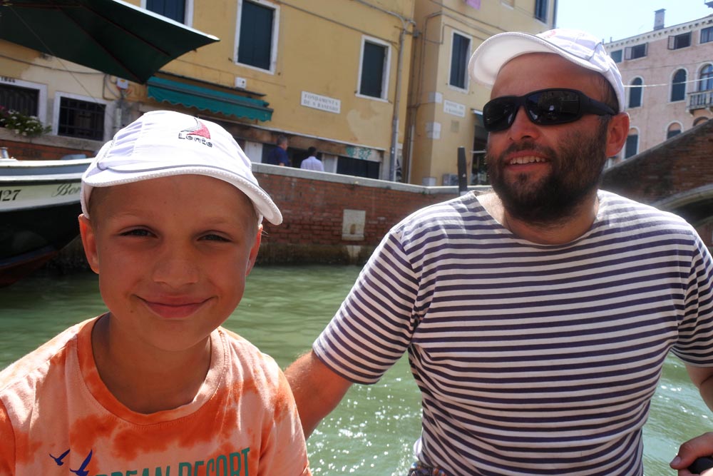 Doslova se doplazíme v tom děsném vedru na náměstí svatého Marka a pozorujeme ty fronty na cokoliv. Benátky ročně navštíví 30 mil. turistů a stálých obyvatel je přitom kolem 50 tisíc. Gondola za 100 E… nechceš…? … nevadí za tebou stojí fronta šikmookých turistů, kteří radostně tahají bankovky z peněženek. Mnohahodinové fronty na veškeré památky nás utvrdily v tom, že odsud asi brzo vypadneme. Potřebujeme dokoupit nějaké základní potraviny, ale krám je těžké pohledat. To tak cukrárnu, kavárnu nebo restauraci. Ani se nedivím, že se tu místním už nechce žít. Město je stoprocentně vybaveno a přichystáno pro turistu, ale to je tak všechno. Kupujeme si lístek do Vaporeta a projíždíme celé Benátky skrz na skrz. Nakonec já s Nojmikem vystupujeme, že přeplavíme člun zpět k Lente. Luky mě uprosí, že pojede s námi. Nemůže si to dobrodružství přeci nechat ujít. Stáňa s Verčou pokračují vodním autobusem až na ostrov Fisola, kde snad stále stojí naše Lente.