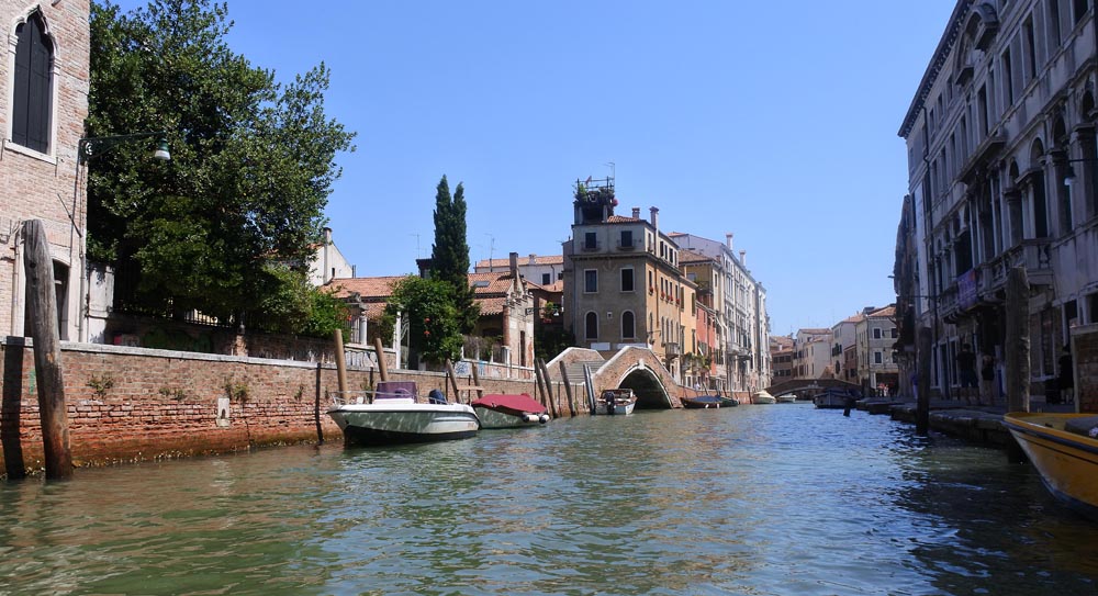 Míjíme sloupy se lvy a nábřeží, odkud vyplouval Marco Polo na svojí dalekou cestu do Číny. Byl jsem i na druhém konci zeměkoule, kde v městě Xian Marco svou pouť hedvábnou stezkou končil. Je to strašná dálka. Tohle město z námořního obchodu vytěžilo, co se dalo. Bohatství zdejších paláců je toho důkazem. Plujeme dále hlavním kanálem a míjíme předraženou marínu na ostrově San Giorgio. Zkoušíme se přiblížit k hlavnímu nábřeží, ale vlnobití od proplouvajících lodí je tak silné, že to vzdáváme. Rozbili bychom bok lodi o nábřeží. Na začátku ostrova Sasca Fisola vidím široký kanál a kůly. Rozhodnu se vjet do kanálu a přistanu u kůlového stání. Je to docela divočina, jak na lochnesce, ale stojíme. Zdá se, že je to městské stání pro místňáky. Na každém sloupu je vylepeno, komu to stání patří. Jenom ten náš sloup nemá nic.