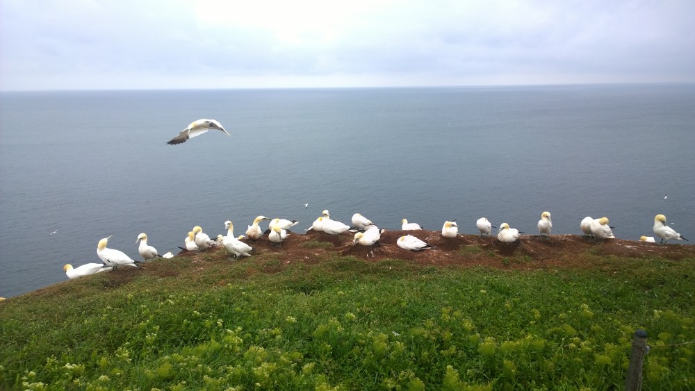 Helgoland tvoří dva ostrovy, které byly ještě nedávno spojené. Nižší písečný, kam je přístup zakázaný a druhý, který je jeden velký útes. Celé je to ptačí rezervace a hlavně bezcelní zona, takže většina ostrova jsou krámky s alkoholem a cigaretami, do kterých každé ráno trajekty vozí hory turistů. Pravda, že single malt whisky tu začínají na 15EUR. Na druhou stranu se všude válí tuleni a asi v životě jsem na vlastní oči neviděl takovou koncentraci nejrůznějších ptáků. Celé kolonie hnízdí v útesech, létají všude kolem a do toho vytvářejí neskutečný povyk. Život tak trochu jinak, ale hodně hlasitě.