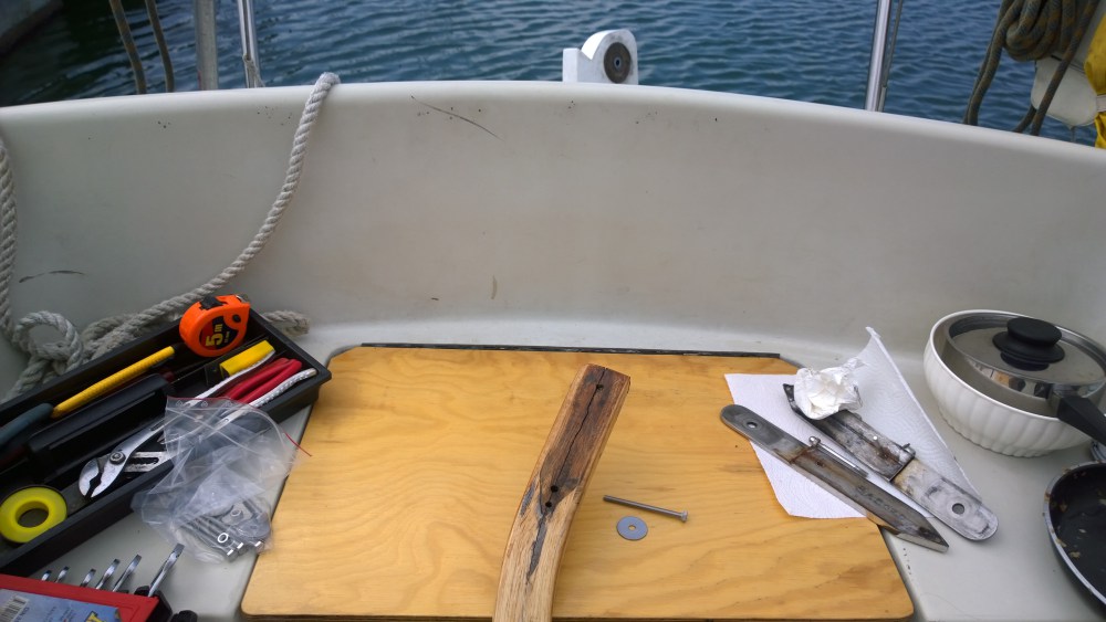 Po návratu na loď mě čekala má milá…důvěrně, snad až intimně známá … rozbitá záchodová mísa. Nakonec jsem se nemusel potápět pod loď, ale povedlo se mi z mola pod vodou nahmatat výpusť (Ondra mi držel nohy), ale nepodařilo se mi záchod uvolnit. Takže zase rozebrat. No, co si budeme povídat, pro Marii je to snad nejčastější závada a se záchodem máme již pevné pouto. Takže narozeninové rochnění prakticky hlavou v míse. Yummi. =D
