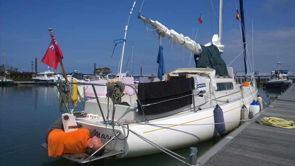 Brandon další ráno brzy odjížděl do Hamburku, bylo trochu smutné se s ním po téměř 6 týdnech loučit. V úterý jsme zůstali celý den v přístavu, já opravoval kormidlo a pak šel zaběhat, kluci chodili po ostrově, který mimochodem patří k nejhezčím, co jsme zatím viděli. Opět jsme skočili do hospody doplnit zásoby Flemsburgrů (výborné německé pivo) a nechat si dát nějaké tipy ohledně plavby a navigace v místních vodách.