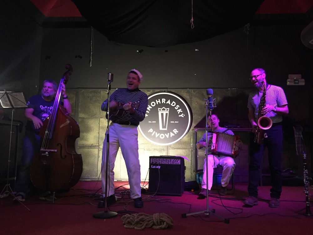 Kdo jste na Nabitém večeru byl, dáte mi asi za pravdu, že se první ročník vydařil. Sál Vinohradskoho pivovaru byl zaplněno do posledního místečka a kdyby byla účast hojnejší, museli bychom si sedět na klíně (v některých případech by to bylo i fajn 😉 ). Večer otevřel námořnický band Arnošta Hanfa – Pár Mu Jich Dej Band, který ostatně provázel celým večerem a intepretací námořnických písní skvěle doplňoval celkovou atmosféru.