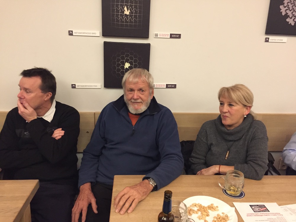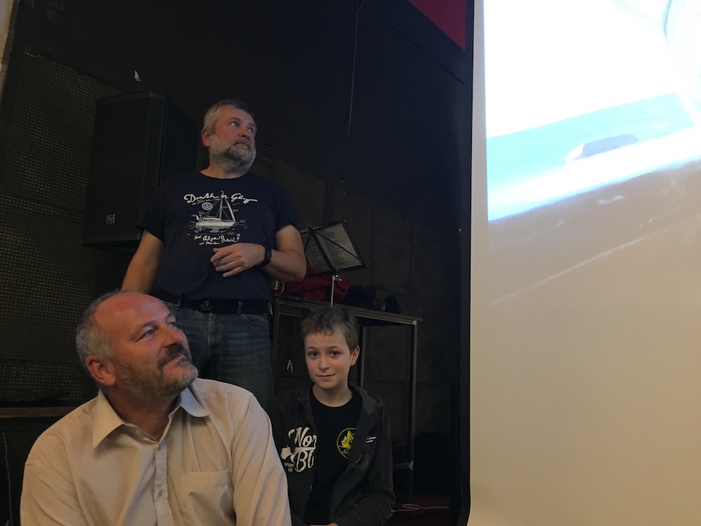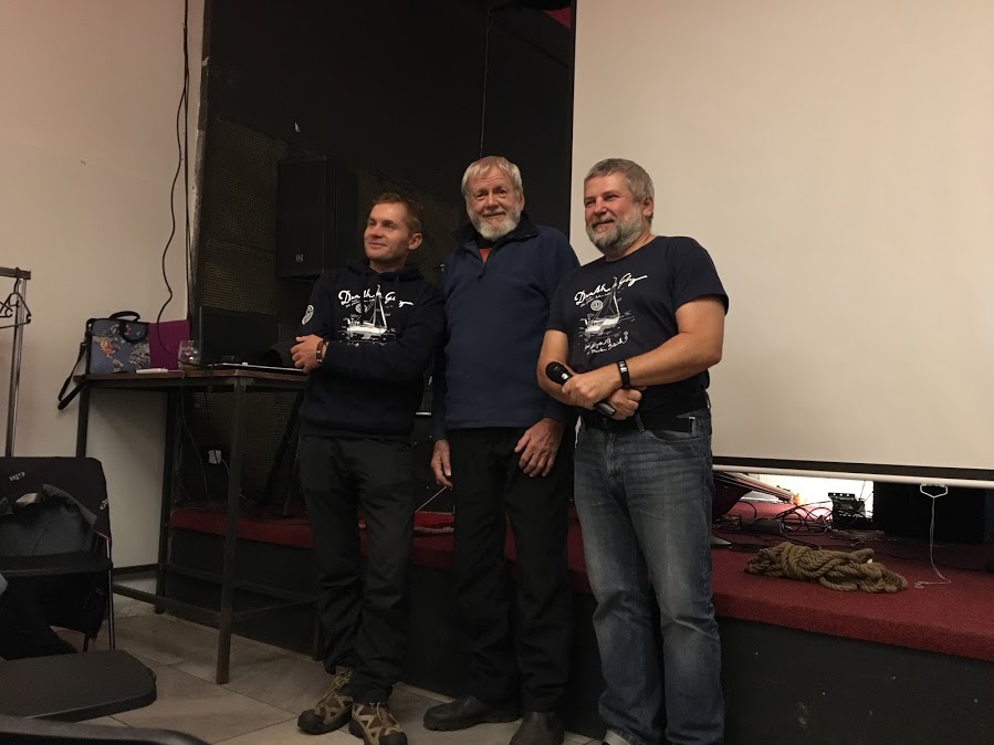 A pak už přišel Martin a kouzelný dědeček John, který se hned na začátku vysloužil standing ovation celého auditoria. Martin se zhostil mikrofonu s elegancí sobě vlastní a až do pozdních hodin vyprávěl o svém ztroskotání, o náročné záchraně Alye a jejich opravách v australském Cooktownu, ve kterých hrál nezastupitelnou a nezištnou úlohu právě kouzelný dědeček John (81). Došlo samozřejmě i na otázky na Johna, protože byl poprvé v České republice, poprvé v Evropě a poprvé viděl sníh! Martin se navíc skromně přiznal, že nejen, že ukazuje Johnovi krásy Čech, ale naučil ho i mít rád české pivo. (více o Martinových dobrodružstvích zde).