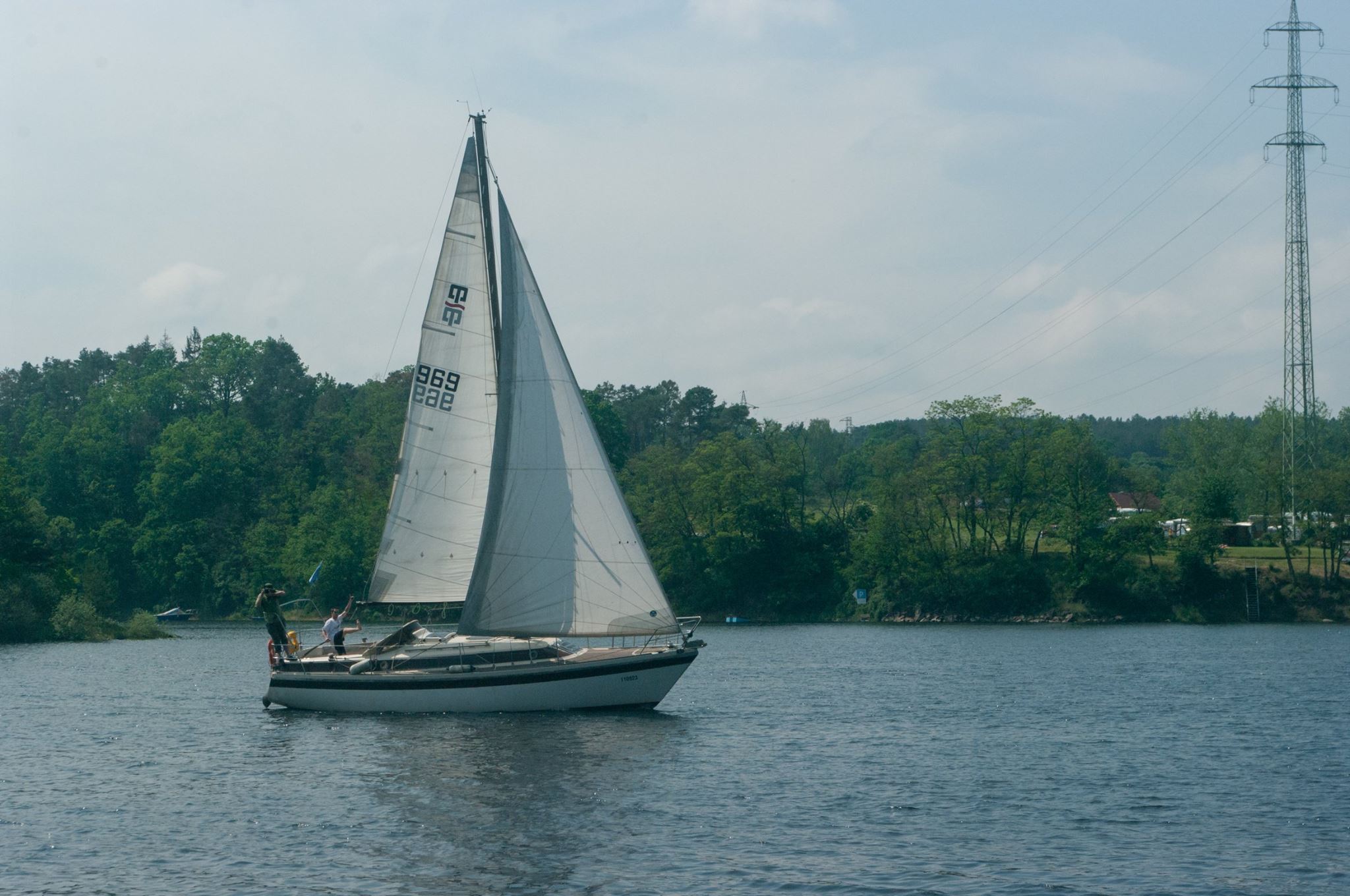 V půl třetí jsme se pod zámkem Orlík setkali se všemi loďmi najednou. Byl to jediný okamžik, kdy byla celá flotila pohromadě, a bylo to úžasné. Plachtili jsme sem a tam, foukalo tak 5-7 uzlů a volali na sebe vtipné hlášky. Za chvíli se ale začali lodě odpojovat, Maybe se vracela zpátky na sever k sobě do mariny a my jsme zamířili do našeho stání abychom stihli pořádně uklidit.
