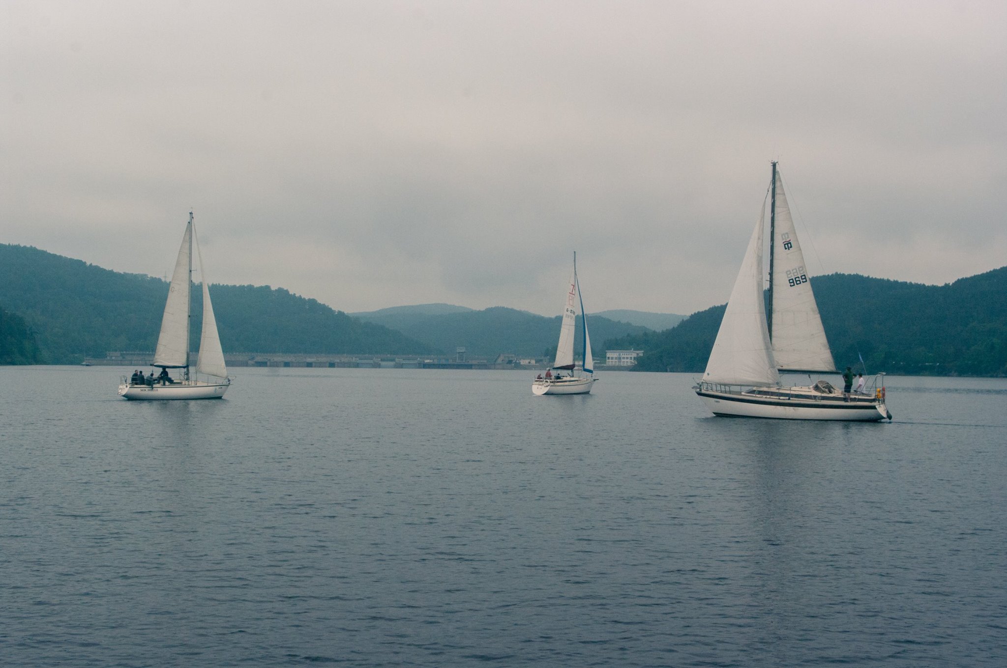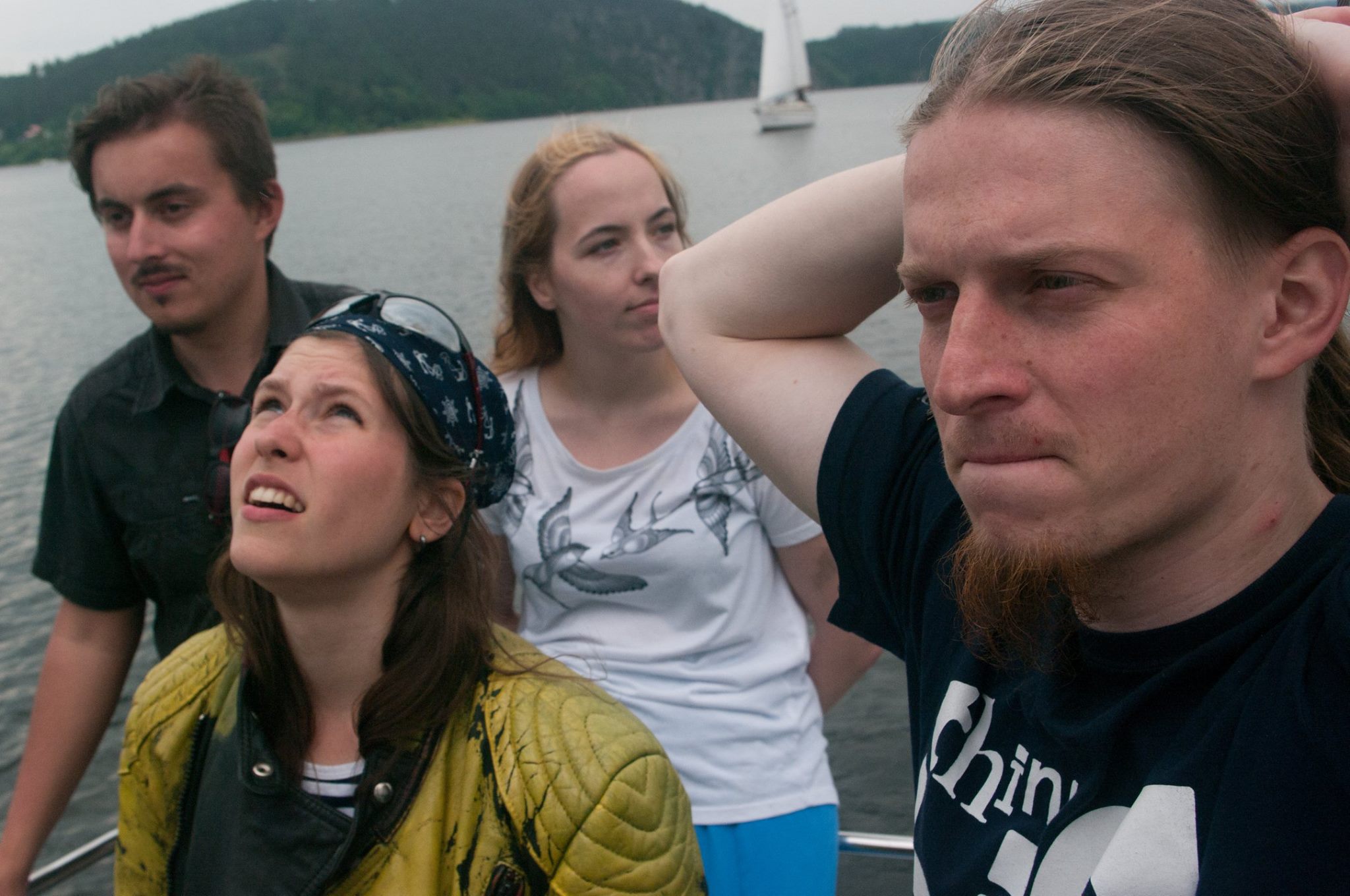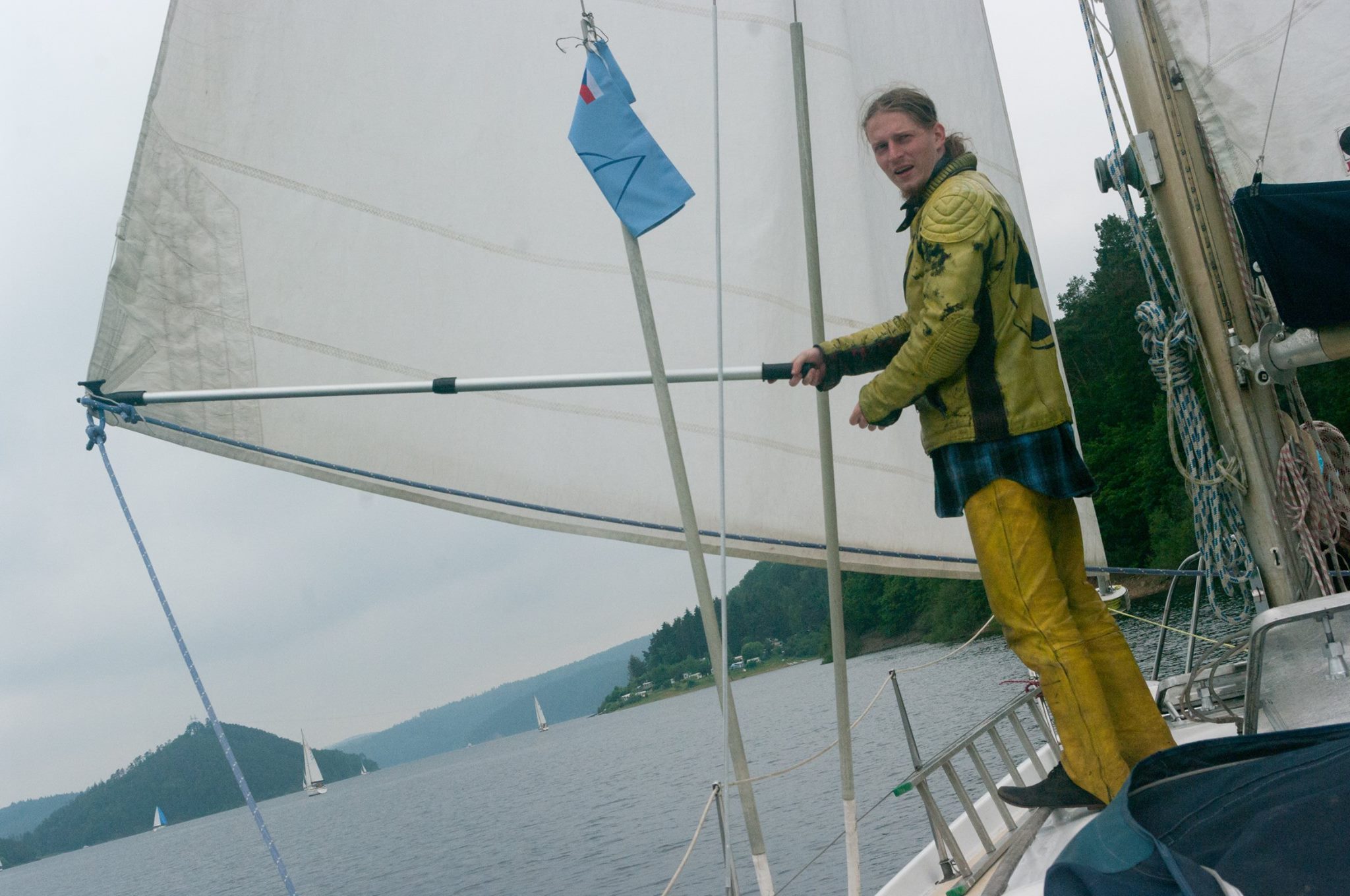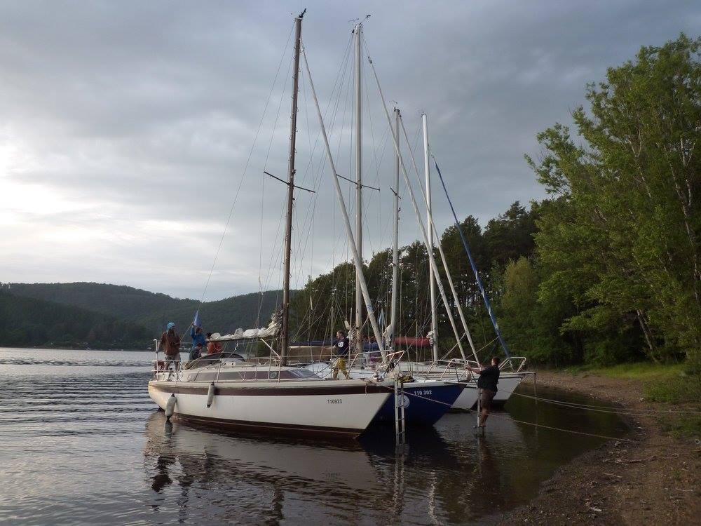 Ráno se vstávalo s mírnými potížemi díky večeru a také nás opustili Ciri s Maníkem, kteří si chtěli udělat pěší výlet. Nasnídali jsme se, uklidili vše, co po nás na pláži zbylo, a poradili jsme se s ostatními kapitány na plánu. V tu chvíli nefoukalo vůbec nic a na bouřku to taky nevypadalo. Doufajíc, že začne foukat, jsme se shodli na závodu od Orlické přehrady až k zámku Orlík. Vyplutí bylo trochu napínavé, protože se všechny lodě odvázali od břehu skoro ve stejný okamžik, zkušení kapitáni všech lodí však zachovali chladnou hlavu a ze zmatku jsme se vymotali bez problémů. Loď Michele s Rosou si ještě při čekání na ostatní střihli krásné plachetnicové tango a následně jsme se všichni seřadili u pomyslného startu, odkud jsme museli křižovat k přehradě, otočit se za bójkou, označující zakázanou oblast a na motýla plachtit skoro až k cíli.