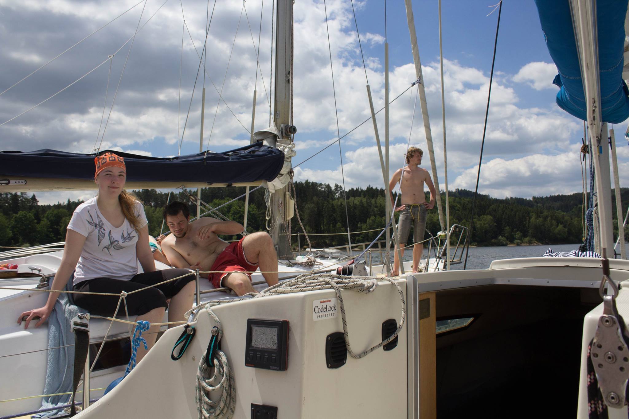 …Lodní bitva byla epická!! Vůbec jsem nečekala, že to vyjde takhle dobře a že to bude taková zábava! Rozdělili jsme se do dvou týmů, jeden měl na příďovým koši černé triko, druhý červené triko. Týmy od sebe kousek odepluli a na můj rozkaz vystřelil kapitán Miki zahajovací světlici. Lodě se rozepluli proti sobě, vysílačkama jsme se domlouvali na strategii, Liberté a Calamity pluli na Marcianu z obou stran a pálili co mohli. Kdo nestřílel z praku, házel ručně. Marciana se statečně bránila a nakonec odplula z našeho dosahu. Mezitím se Boncoeur zaměřila na čuňátka (Zita) a jala se je stíhat. Nebudu popisovat celou bitvu, ani si ji nepamatuju, ale bylo to napínavé jak kšandy a adrenalin tekl proudem! Po pár minutách nám ale došla munice. Jediná Boncoeur použila neschválenou munici a jala se pálit po ostatních lodích měkkými šiškami, které nasbírala nenápadně ráno v lese. Rozhodně mohu říci, že bitva měla velký úspěch, byl to úžasný zážitek a na příště se pokusíme vylepšit střílecí techniku i pravidla. Jen poznámka – celé jsme to samozřejmě pluli na motor, na plachty by to nebylo reálné. A kapitáni měli povel nepřibližovat se blíže jak na 10m. Jen abyste si neříkali, že jsme nějací nezodpovědní nevybouření puberťáci. 😉