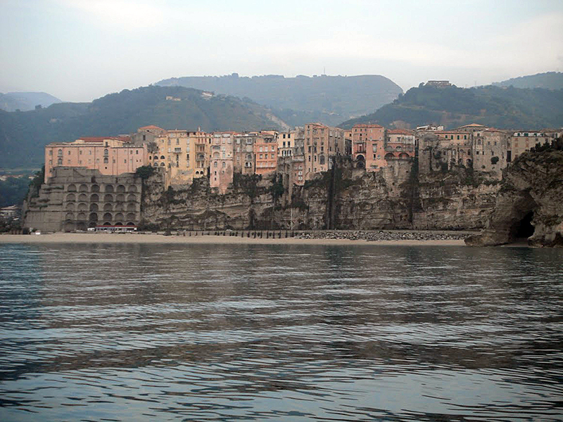 Tropea je velice zajímavé středověké město, postavené na útesech, které padají kolmo do moře, odkud je na Tropeu opravdu úchvatný pohled. Našinec něco takového jen tak nevidí. Pod útesy je marína, kde jsme ve 20:30, po mírném zajižděcím hororku, přistáli. Nejdříve jsme se vrhli do sprchy, což bylo opět dokonalé a pak v deset večer, po večeři, vyrazili ještě na chvíli na útes do města. Poseděli jsme v kavárně, i pivko jsme si dali. Noční Tropea rozhodně stála za to.