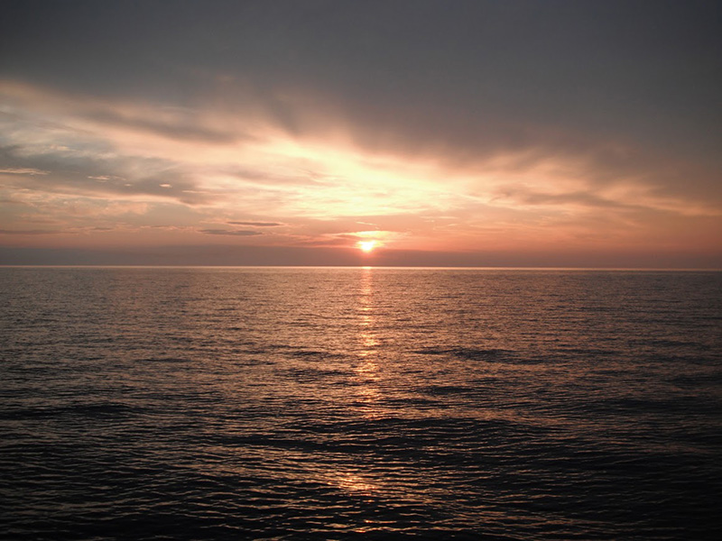 Panovalo bezvětří, bylo pod mrakem a moře vypadalo jako slapské jezero. Celých třicet mil jsme jeli na motor.