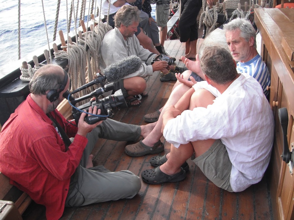 Televizní štáb se rychle zabydlel a se všemi se rychle skamarádil. Ze všech třech se vyklubali moc fajn kluci, i z Tomáše Hanáka, který je vlastně trochu celebrita. Ale sžili se s lodí rychle a samozřejmě Tomáš zkoušel lézt i do lanoví a velice mu to šlo.