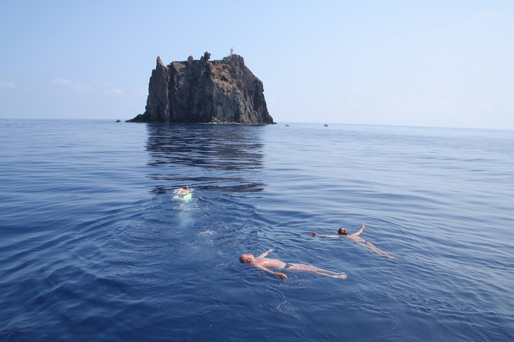 Poté, co jsme se trochu vyspali z včerejších objevitelských zážitků na sopce a po obvyklém hodinovém točení klikou, kdy jsme vytahovali kotvu, opustila LaGrace kotviště před San Vincezem a vydala se k ostrůvku Strombolichio. Strombolichio střeží přístup k sopce Stromboli od severu a je na něm umístěný maják. Samotný ostrůvek je asi 60metrů vysoká skála vystupující kolmo z moře tvořená údajně ztuhlým vnitřkem kráteru, když vnější část kráteru zerodovala a zmizela v moři. Je na něj velice zajímaví podívaná.