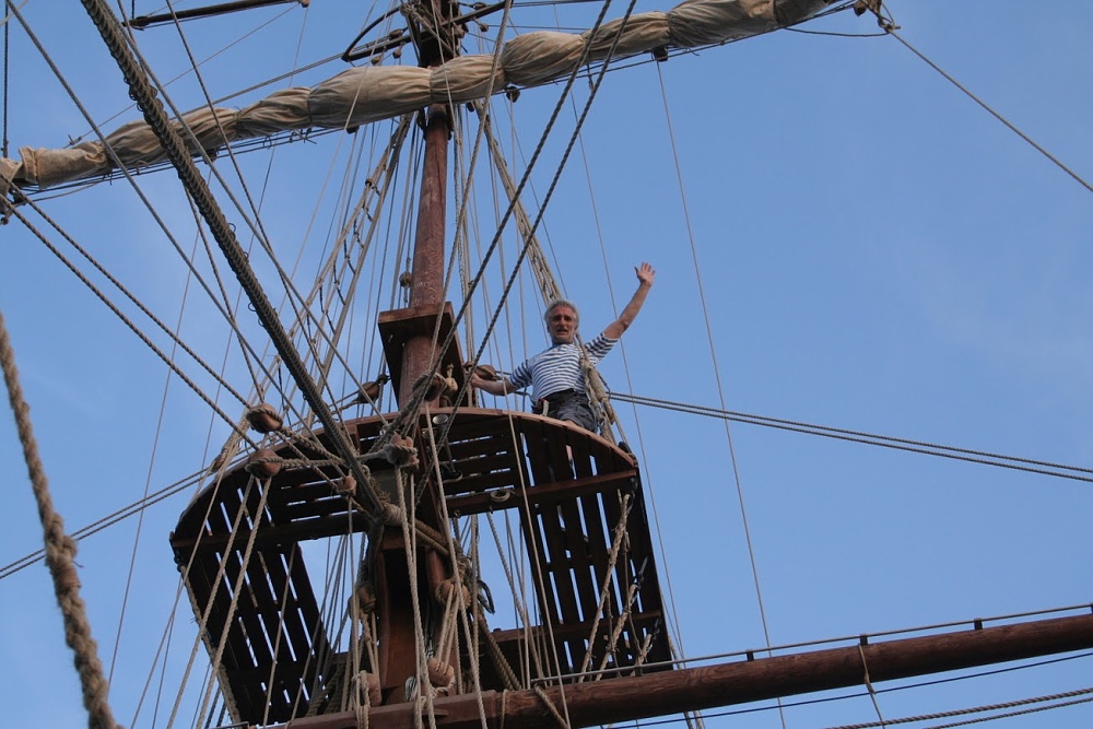 No, když jsem slezl konečně dolů (a když jsem míjel koš, přišlo mi to skoro jako by byl tak metr nad palubou), byl jsem rád, že jsem rád. A když jsem se podíval na brám, nemohl jsem uvěřit, že jsem tam vylezl. Byl to po letech vážně výlet do vlastního nitra a jako zkouška, co člověk zvládne, to bylo tedy vynikající. Inu ne nadarmo jsou tyhle lodě provozované jako školní. Kde jinde poznat, co v člověku je?