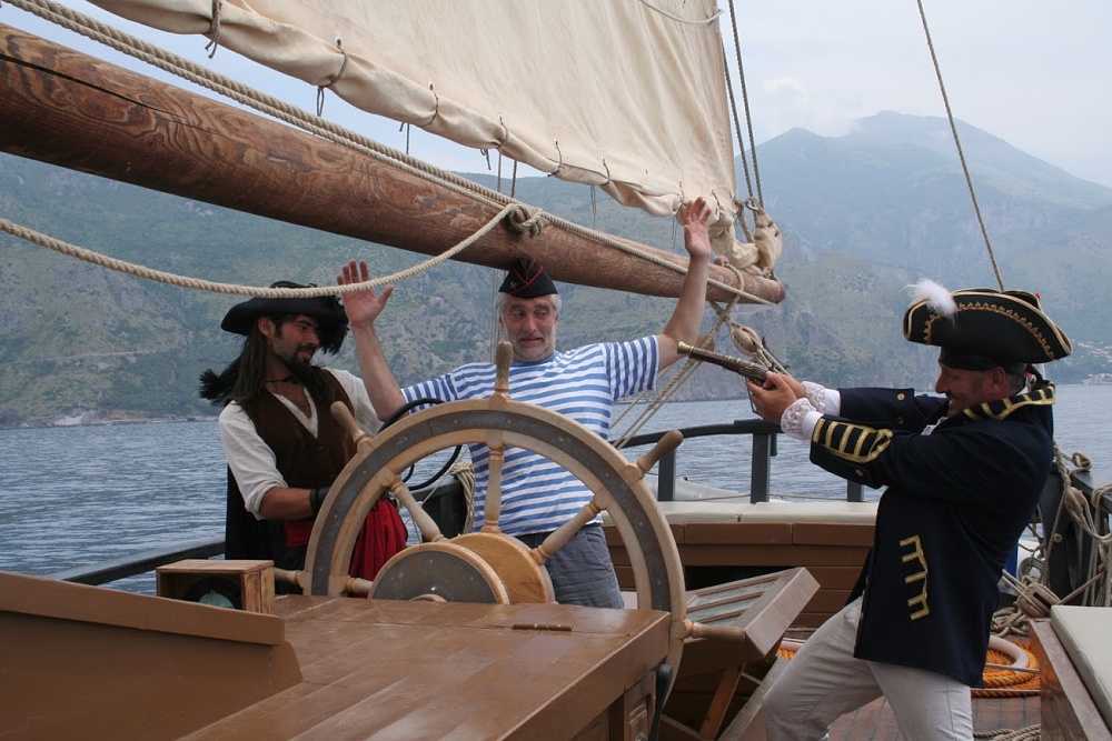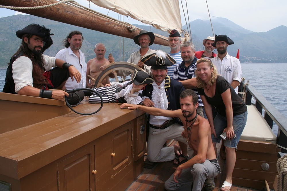 Plavba pokračovala v noci, dívaje se do deníku, měl jsem službu 0:00-2:00 a pak 6:00-8:00. To už se jelo na motor, protože asi ve tři ráno vítr zcela ustal. Dopoledne pak štáb točil ještě další scény pro svůj pořad, ve kterých posádka zdatně účinkovala, nebo se alespoň v pozadí tvářila dostatečně pirátsky. Odpoledne jsme pak Tomáše Hanáka i celý štáb vysadili na pobřeží na vlak, kterým se vraceli do VIba, kde nechali zaparkované auto, aby pokračovali směrem na Sicílii. Loučení bylo docela i trochu dojemné, protože i za tak krátkou dobu jsme se skamarádili a navíc oni se netajili tím, že se jim na LaGrace moc líbilo a že by klidně pluli s námi dál…