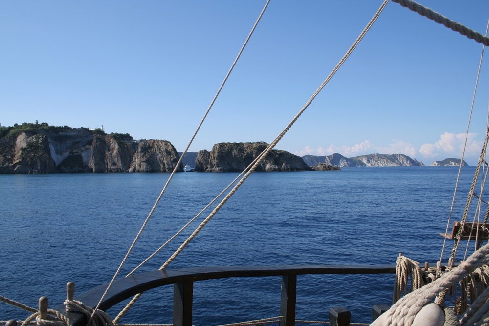 Budíček je v šest hodin. Kapitán velí k odplutí a tak rukavice na ruce a točit klikou. Po hodině práce je kotva venku a my se vydáváme vstříc ostrůvku Ventotene.