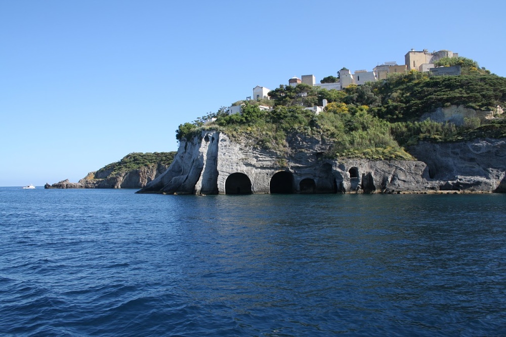 Dalším cílem pro ten den byl ještě ostrov Ponza. Ostrov známý svými zbytky římských lázní a také tím, že římští císaři z počátku našeho věku sem jezdívali na letní sídlo. Svůj palác tu míval Caligula, odsud řídil Řím Tiberius a zajížděl sem prý i Nero.